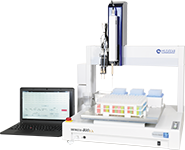 可輕鬆設置稀釋量和稀釋倍率。通過攪拌功能,可以進行混合動作。因為可以直接搭載分析裝置的機架,所以到分析為止的流程順暢。