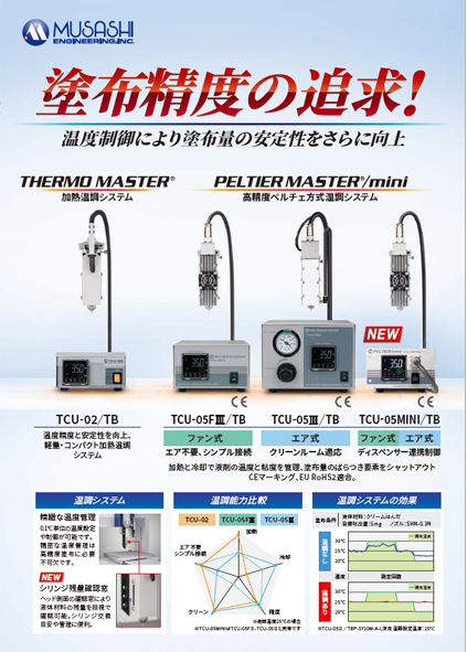 另外,除了受到外部環境的影響外,對針筒内部的發熱(例:粘合劑的化學反應熱等)也有效果的是具有冷卻功能的佩爾切式溫調大的特點。